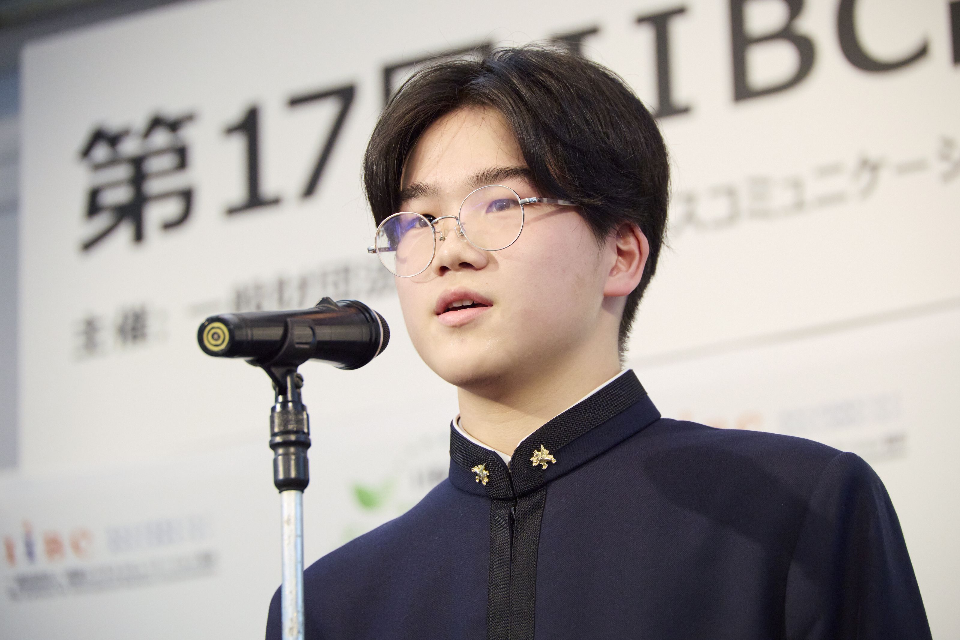 この度は、最優秀賞を頂き大変光栄です。小学生の時、障がいのある同級生が言葉ではなく静かな行動で感謝を伝えてくれた経験から、「コミュニケーションの本質とは思いであること」「沈黙の大切さ」を書きました。