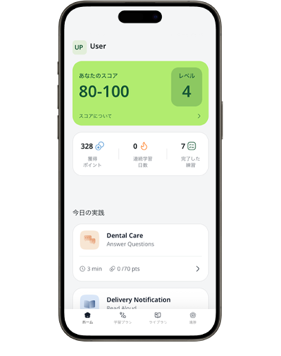 ※レベルチェックをスキップした場合、アプリ内ホーム画面「あなたのスコア」には自動的に「80-100」が表示されます。